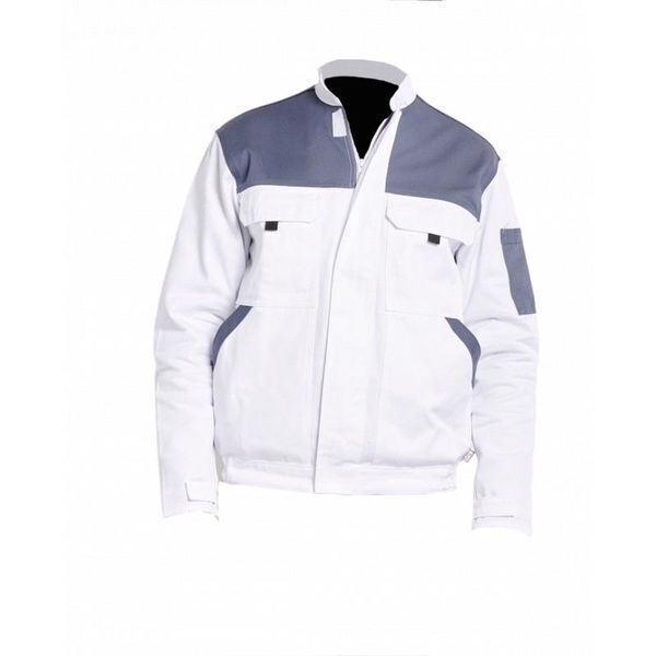 Blouson bicolore. Col officier. Fermeture à glissière centrale cachée sous patte fermée par 3 velcros. Poignets Velcro®. Empiècement dos et devant. Poche stylo sur la manche gauche, 2 poches poitrine à rabat fermé par Velcro®, 2 poches basses plaquées, poche téléphone intérieure. | Sans partie métallique.