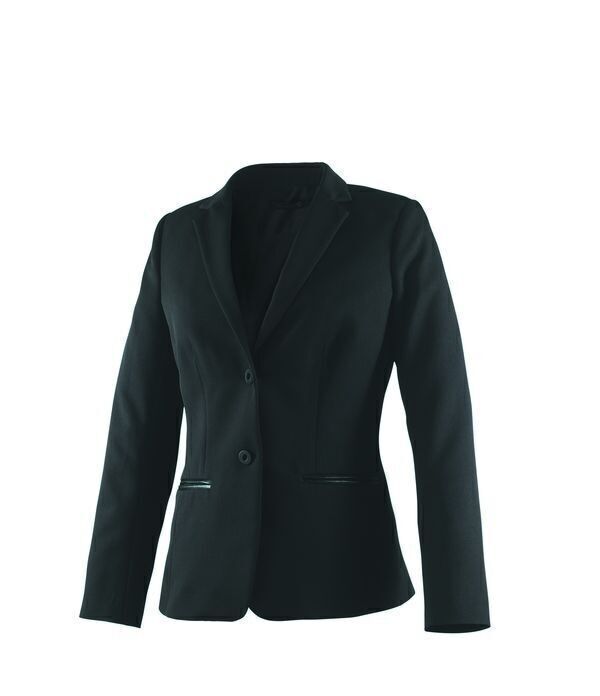Veste de service doublée. Fermeture milieu devant par 2 boutons cousus effet gomme. Pinces poitrine. 2 poches basses passepoilées finitions effet cuir, 1 poche basse intérieure gauche en doublure. Coupe ajustée.