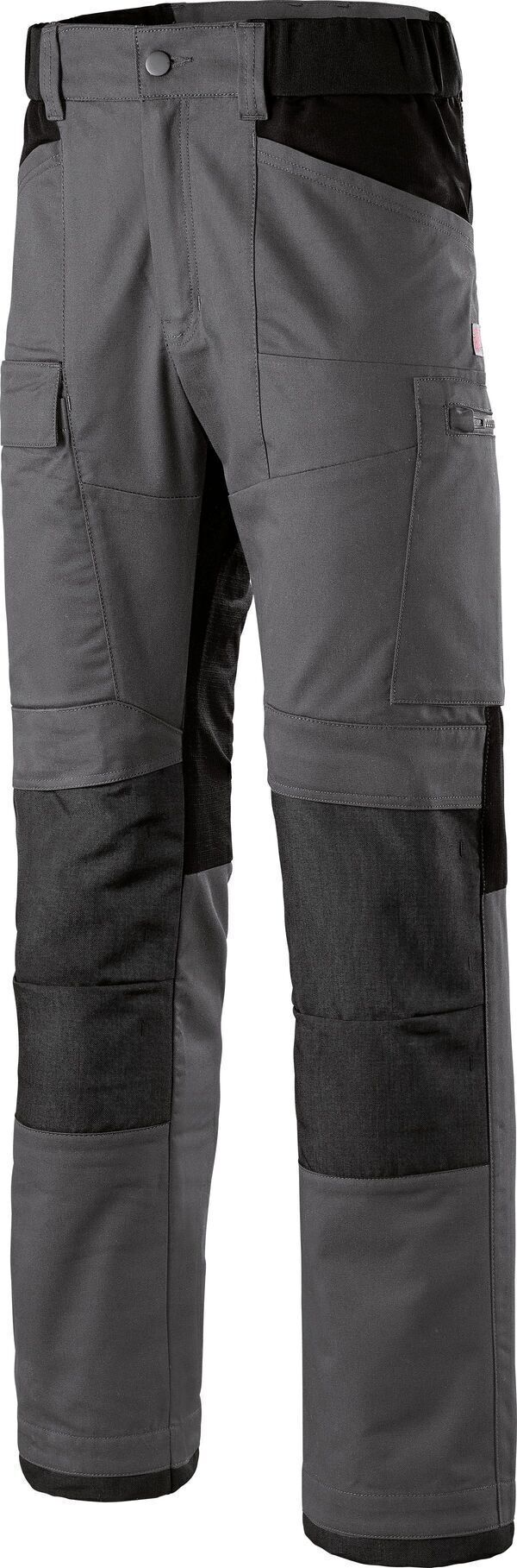 Pantalon bi-matière homme. Ceinture élastiquée aux côtés. Insert lombaire en bord-côte extensible. 2 poches italiennes. Fond de poche, arrière de la cuisse et insert d'aisance à l'entrejambe en Ripstop stretch Cordura®. Côté droit : poche cuisse fermée par rabat avec auto-agrippant. Poche mètre avec bas volant en Cordura®. Côté gauche : poche type cargo avec soufflet en Cordura® fermée par zip. Poches genouillères préformées, renforts bas de jambes et ourlet en Cordura®. Rehausse dos. | Mercerie tout plastique. Coupe ajustée. E.J. : 80 cm (+ 5 cm).