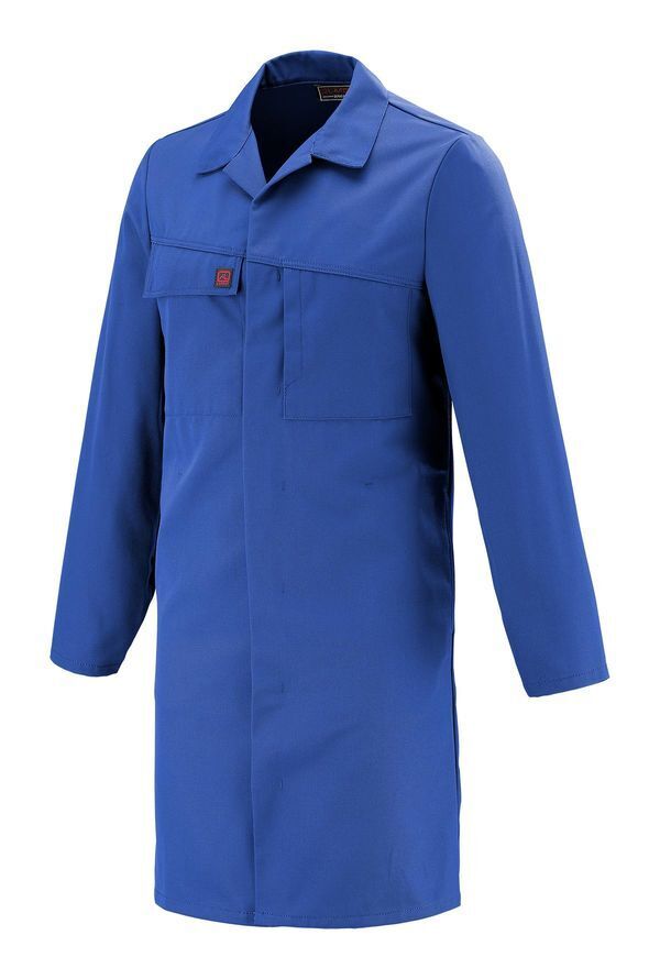 Blouse à col transformable. Devant fermé par pressions cachées. Collerette de marquage. Empiècements devant et dos obliques. Poches poitrine sous rabats fermées par Velcro® cachés, incrustée à droite, ouverture verticale à gauche. Poches basses dans coutures côtés. Fonds de poches maintenus par point d’arrêt. Manches montées. Bas de manches réglables par pression. Fente dos. Surpiqûres contrastées. Mercerie tout plastique.