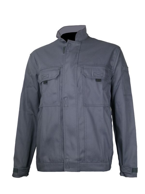 Blouson uni. Col officier. Fermeture à glissière centrale cachée sous patte fermée par 3 velcros. Poignets Velcro®. Empiècement dos et devant. Poche stylo sur la manche gauche, 2 poches poitrine à rabat fermé par Velcro®, 2 poches basses plaquées, poche téléphone intérieure. | Sans partie métallique.