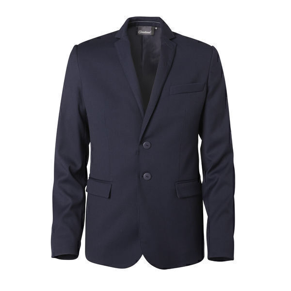 Veste homme fermeture 2 boutons. Col tailleur avec découpe et 1 fausse boutonnière. Pinces devant. Poche poitrine passepoilée, 2 poches basses passepoilées avec rabat, poches intérieures. Double fente dos. Bas arrondi.