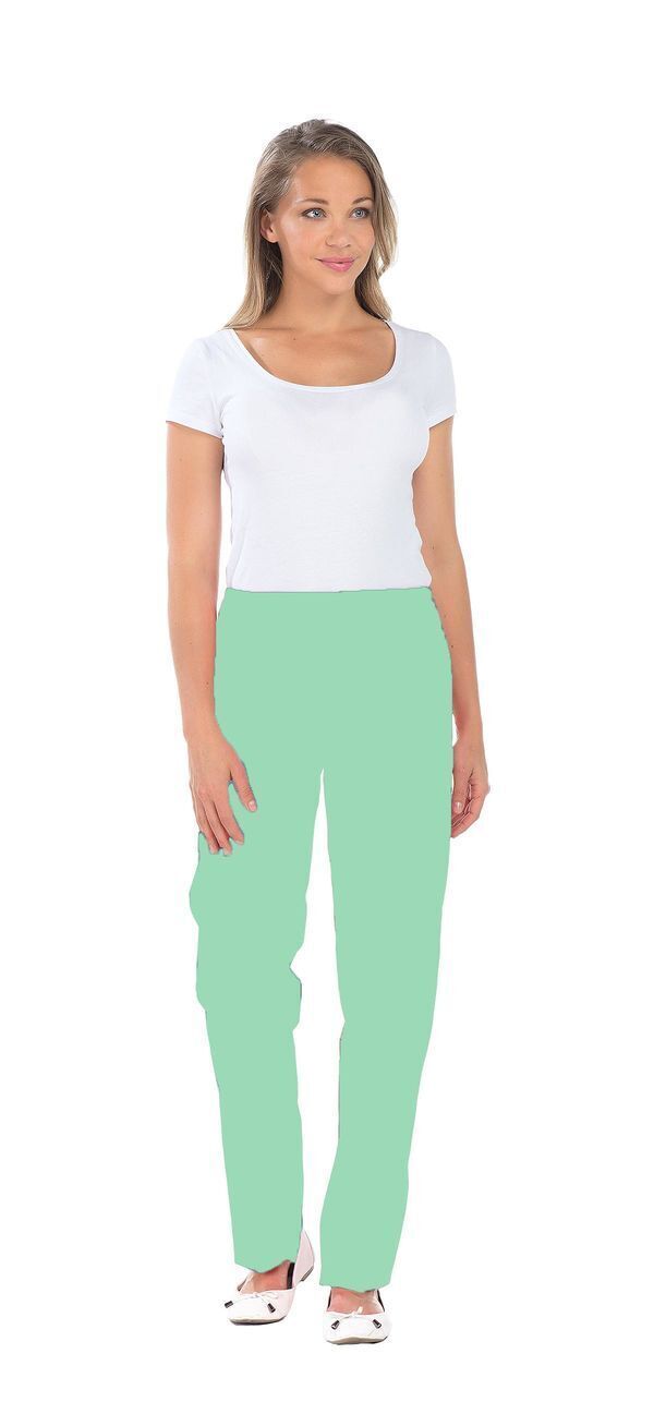 Pantalon femme. Taille semi-élastiquée effet ventre plat. 2 poches italiennes. E.J. : 82 cm.