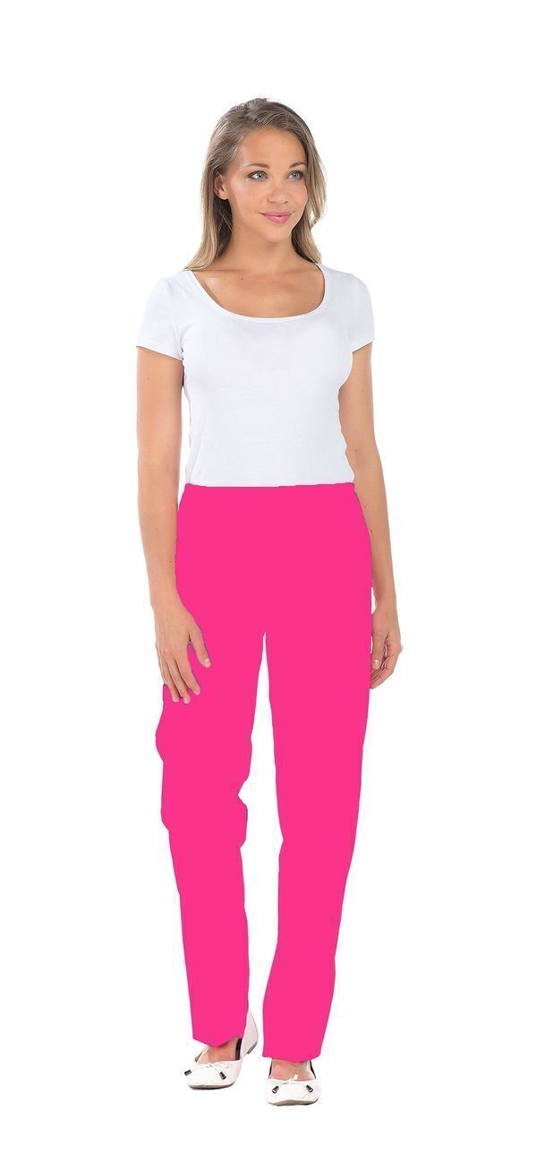 Pantalon femme. Taille semi-élastiquée effet ventre plat. 2 poches italiennes. E.J. : 82 cm.