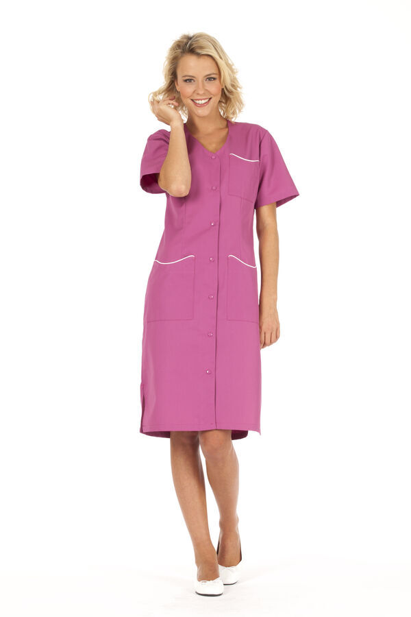2 poches basses plaquées avec passepoil contrasté. Fentes côtés. Manches courtes.