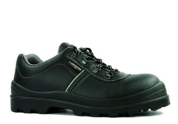 Chaussures de sécurité homme basses. Tige cuir fleur hydrofuge. Semelle de propreté GIOVE®. Doublure HK3®. Embout non métallique UNICOMP® 200 J. Semelle anti-perforation Armateak non métallique. Semelle externe Solagrip PU.