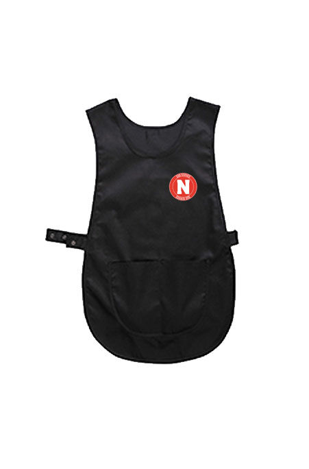 Chasuble de ménage noir, avec le logo N Nicollin sur le coeur.