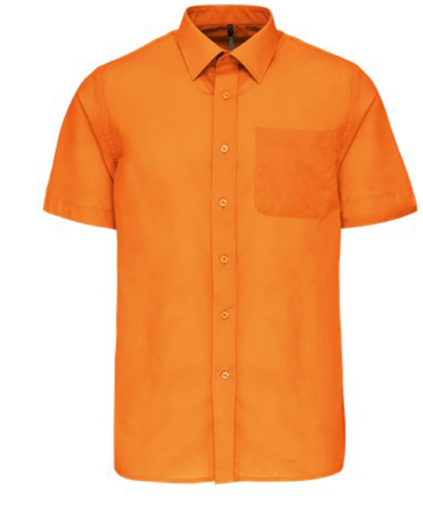 CHemise manches courtes orange avec marquage coeur N SECURITE + velcro pour numéro RIO, marquage dos SECURITE PRIVEE et écusson SECURITE SNCF manche droite.