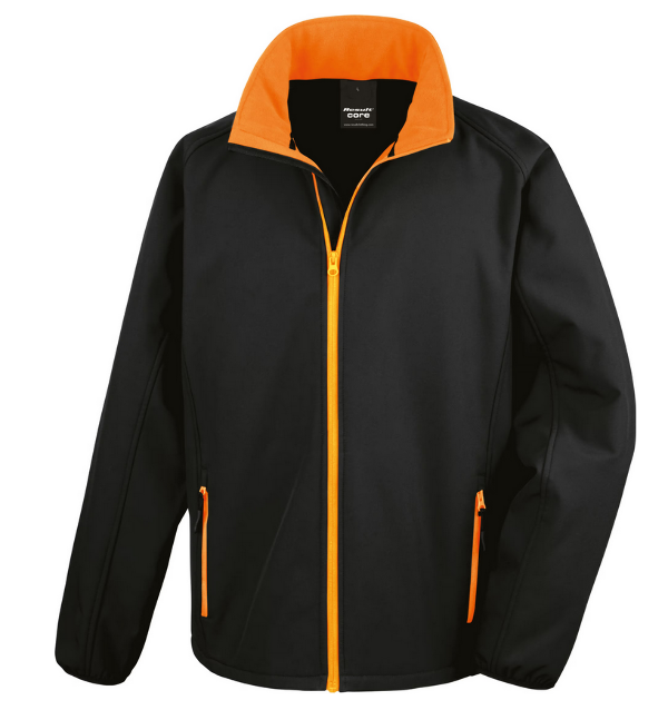 Veste softshell noire avec marquage coeur N SECURITE + velcro pour numero RIO, marquage dos SECURITE PRIVEE et écusson SECURITE SNCF manche droite.
